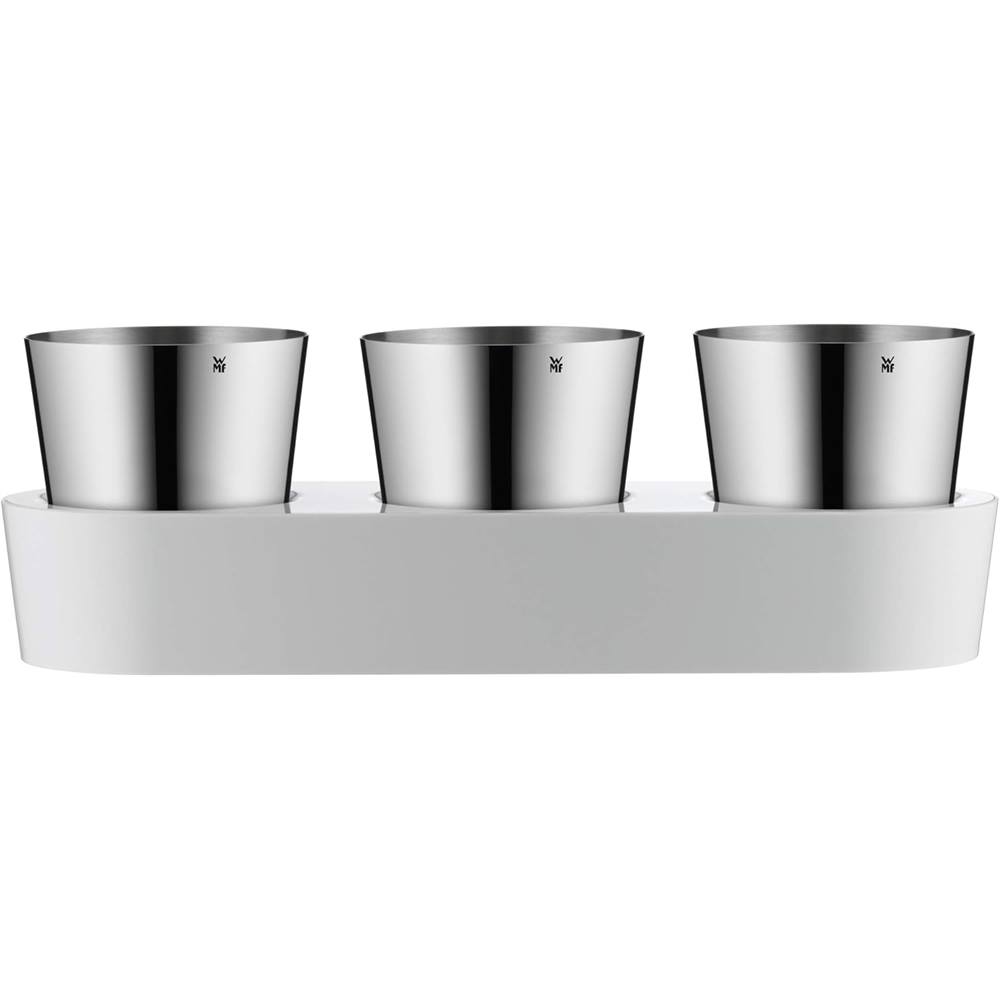 Zu Hause jederzeit frische Kräuter genießen: Der 3-teilige Gourmet Kräutergarten von WMF hält dank seines intelligenten Bewässerungssystems mit Glasfaserdocht sowie seines großzügigen Wassertanks Pflanzen für mehrere Tage automatisch frisch. Einfach Wasser einfüllen und den Kräutern beim Wachsen zusehen. Das intelligente Bewässerungssystem mit Glasfaserdocht hält die Pflanzen automatisch tagelang frisch. Der Tank fasst genügend Wasser für mehrere Tage, sodass Kräuter und Pflanzen immer frisch bleiben. Der Wassertank ist dank abnehmbarem Deckel einfach zu befüllen. Die rutschfesten Silikonfüße des Untersetzers sorgen für hervorragende Stabilität. Perfekt für drei Arten von Kräutern oder Pflanzen (drei Gefäße je einen Durchmesser von 10,7 cm). Die Pflanzengefäße aus Cromargan: Edelstahl Rostfrei 18/10 sind spülmaschinengeeignet, während sich der Wassertank ganz leicht von Hand reinigen lässt.